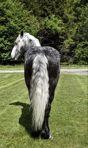ONLINE AUCTION Place your bids at www.PlatinumEquineAuction.com Starting Bid $3500 Auction ends June 23rd, 2024 Need a new saddle? Check out White Rock Saddles on our website or Facebook! Look at what we have here… if you have on your horse shopping list big, pretty, and safe, you’re going to want to take a look at Jackson. Jackson is a 7-year-old Draft cross standing at 16.3H. With his pretty Dapple Grey color, he will get you noticed whether you’re riding him on the trails or taking him for a drive through town. If you’re worried about him being too big to get on from the ground, Jackson knows how to lay down on command and side pass over to the mounting block to pick you up so you can get on him more easily. Jackson may be big, but he will still walk, trot, and canter in the arena. We have put him through our obstacle course, and he will cross anything you encounter on the trails. Jackson has worked with multiple veteran groups and has also done therapy work. His calm demeanor and gentle soul makes everyone fall in love with him. Jackson is a very versatile gelding, and if you don’t want to ride, you can hook him up to a wagon or cart and go for a nice drive down the road or through the woods! Jackson easily picks up all four feet and will stand for the farrier. He is good for the vet, clipping and bathing him. Jackson sells a 100% sound with no vices. If Jackson sounds like the horse for you, contact Dayton at 585-734-0169 for more information. Located in Warsaw, NY. ONLINE AUCTION Place your bids at www.PlatinumEquineAuction.com Starting Bid $3500 Auction ends June 23rd, 2024 Need a new saddle? Check out White Rock Saddles on our website or Facebook!