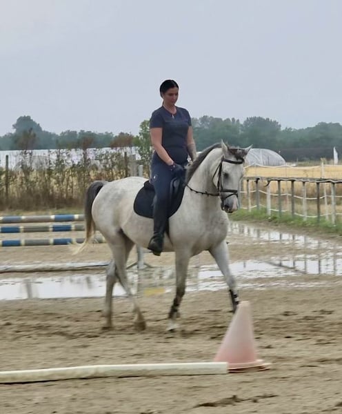 Szofi, Araberstute, 5 Jahre alt, ca. 163 cm Stockmaß. Sie war im Springreiten im Turniersport eingesetzt und springt derzeit sicher bis 115 cm, mit guter Technik und schwungvollen Bewegungen. Aufgrund ihrer Abstammung und ihres Körperbaus ist sie sowohl für Distanzreiten, Springreiten als auch Dressur geeignet und verfügt über ausgezeichnetes sportliches Potenzial. Eine sehr temperamentvolle, arbeitsfreudige Stute mit gutem Nervenkostüm, dabei freundlich und kooperativ im Umgang. Derzeit tragend von Coronell Z, was diese Anpaarung auch aus züchterischer Sicht besonders wertvoll macht. Geeignet sowohl für Sport- als auch Zuchtzwecke, besonders empfohlen für Distanzreiten und den langfristigen sportlichen Einsatz. Standort: Ungarn, Debrecen WhatsApp: +36 30 368 1990