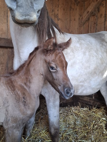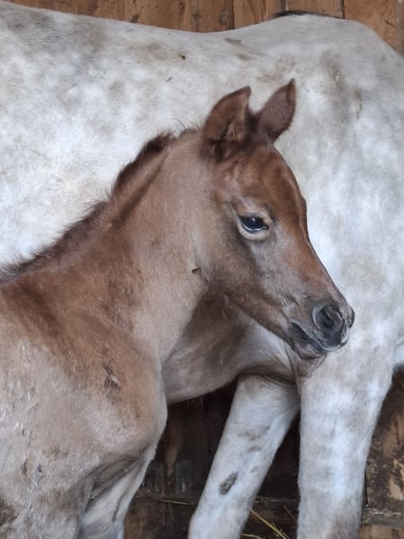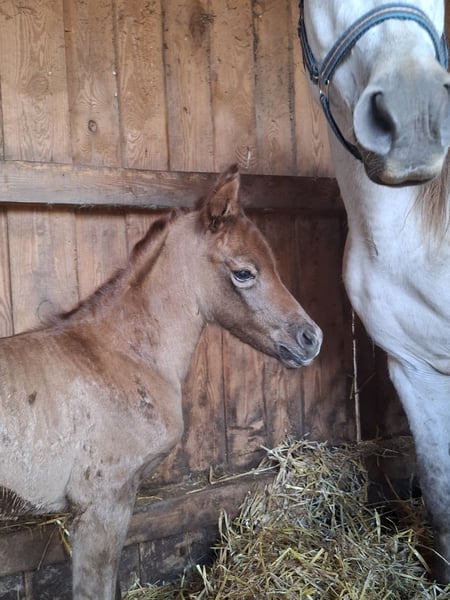 MSA Safira Partbred Arab 87,79% AV Kolor marzowy, będzie się wybarwiać na siwą Urodzona: 15.04.2026 Wzrost w kłębie ok. 150 cm Płeć: klaczka MSA Safira to wyjątkowo piękna, o wyraźnym typie klaczka w eleganckim kolorze ognistego rudawego, która w przyszłości prawdopodobnie wybarwi się na siwą. Już teraz wyróżnia się bardzo eleganckim wyrazem twarzy, dużym urokiem i harmonijnym podziałem ciała. Porusza się z naturalną lekkością, dobrym rytmem i już widocznym przestrzennym rozkładem, co stanowi doskonałe podstawy do późniejszej wszechstronnej, sportowej lub rekreacyjnej edukacji. Wysoki udział pełnej krwi arabskiej na poziomie 87,79% nadaje jej szlachetność, obecność i wyjątkowo subtelne wyrafinowanie. W przypadku poważnego zainteresowania chętnie udzielimy dodatkowych informacji. Możliwość rozłożenia płatności do momentu odbioru!