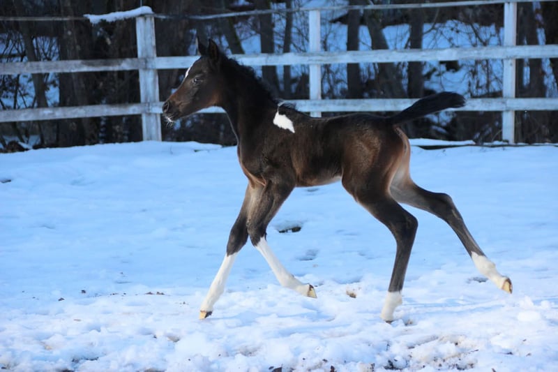 Dieses Stutfohlen bringt absolut alles mit , was das Züchter- und Reiterherz höherschlagen lässt sehr interessant ist sie später mal sicher im Therapie oder Familie Bereich da sie absolut cool , gelassen und menschenbezogen ist , sie sucht immer wieder die Aufmerksamkeit vom Menschen das sie sehe genießt 😍 📏 Wird ca. +/- 155 cm groß ♀️ Geboren am 19.1.2026 🌈Farbe: schwarz braun Tobiano 🐴 Sie wächst im Offenstall mit anderen Fohlen auf – sozial & robust mit allem was dazu gehört 🦠Wird bis zum Auszug regelmäßig entwurmt 💜 Liebevoller Familiärer Umgang 🌈Abstammung, die einfach überzeugt: 🩷Mutter: https://www.allbreedpedigree.com/khadeerah Ist eine bewährte Zuchtstute die absolute Gelassenheit, Korrektheit den Fohlen weitergibt 💙Vater: https://www.allbreedpedigree.com/limited+design2 Körungssieger und HLP Reservesieger Er hat einen hervorragenden Charakter den er verlässlich weitergibt , ist sehr menschenbezogen und nervenstark. 💶 Ratenzahlung möglich