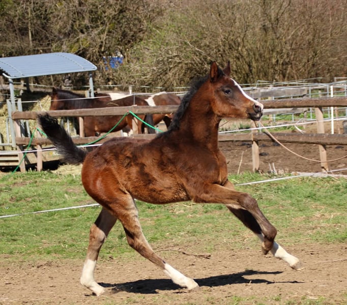 CWH Helau Flame Aurora impresses with her compact build and excellent basic gaits! Her mother is a partbred Arabian mare with Appaloosa blood, which contributes to her agility, while her father, the licensed stallion SL Vision Gold, promises her great size and endurance through her lineage. With her friendly nature and charming presence, she quickly wins everyone over 😊 She was not born without reason on Fat Tuesday 💓 Installment payments available