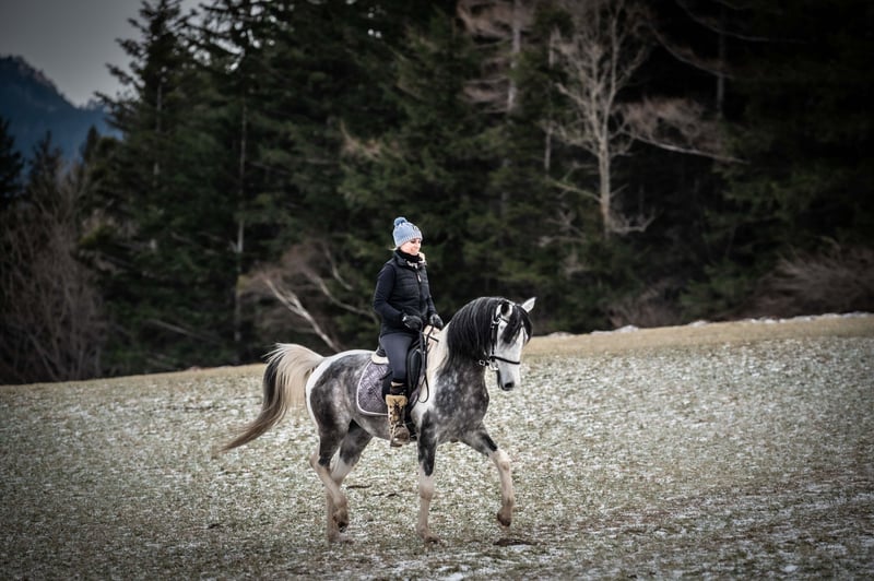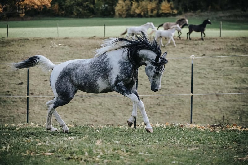 💫 Unique Opportunity 💫 Only if the fit is right, my Caiylani el Zahra will move to a new home — this is definitely not an urgent sale. Caiylani el Zahra Pintabian, 99.22% Porzellanschecke Height: 1.55 m (15.1 hh) Free of CA, SCID & LFS Licensed: ÖAZV, ZFDP, ÖZP & ZSSE HLP Sieger 2021 Stadl-Paura No known health issues Pre-purchase exam available at any time I have spent many years trying to find the right rider for him, someone who can support him in sport and development. Unfortunately, it has never quite worked out. I am a leisure rider myself and cannot fully develop him according to his potential. Since he is just standing around with me, I want to find him a suitable home. Even offering him as a “for use” horse could be an option, provided the conditions are right. Caiylani is an incredibly sweet and well-behaved stallion. Only competition atmosphere stresses him very much, and he would need an experienced handler to help him get accustomed to it. He has been ridden in videos by two children (13 and 18 years old) and, as mentioned, is completely trouble-free. Thanks to his excellent shoulder freedom and natural collection ability, he embodies the ideal Arabian dressage horse. I also see great potential for him in Working Equitation. We have taken him on cross-country courses, and he also shows talent in jumping. He has a big heart and, with a rider he trusts, will go through fire and back. I would also consider selling him as a gelding. The future owner must agree that I can continue to use his training and riding gear for life. I personally bred my stallion. In 2021, he won the HLP in Stadl-Paura with a score of 8.27 and is licensed four times. Recognized for Trakehner breeding and sport pony breeding… I am very proud of him. His outstanding qualities have been proven multiple times and highly praised by those assessing him based on his riding horse points. He covers mares freely on pasture and could run with them year-round. He is very gentle with them. His foals consistently display his Arabian flair, above-average gaits, and correctness. All are very intelligent and affectionate. So far, every one of his offspring has brought great joy. I currently have two at my stable. If you want to give my Caiylani the perfect home, please contact me. A no-obligation meeting is always possible. I am making this decision not based on my heart but purely in the best interest of the horse. We look forward to hearing from you.