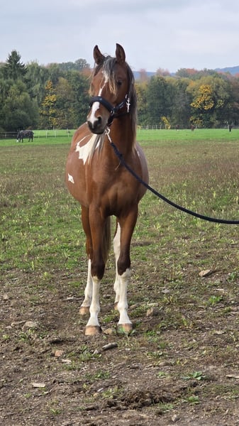 Verkaufe jungen Arabischen Partbred-Hengst (1,5 Jahre alt) – Vielseitigkeitstalent für alle Ansprüche! Zum Verkauf steht ein vielversprechender Arabischer Partbred-Hengst, geboren im Jahr 2024.) Mit einem Stockmaß von zur Zeit 146 cm (voraussichtliches Endmaß ca. 156 cm) vereint er Eleganz und Beweglichkeit in perfekter Harmonie. Sein auffälliges Tobiano-Farbmuster macht ihn zu einem echten Blickfang und verleiht ihm einen einzigartigen Charme. Namiro ist gut sozialisiert, besitzt ein freundliches und ausgeglichenes Wesen. Er wächst im Herdenverband auf, kennt Hunde, ist lieb bei der Hufpflege und unkompliziert im Umgang. Der Hengst ist bestens geeignet für die Vielseitigkeit und lässt großes Potenzial für den anspruchsvollen Sport erwarten. Seine freundliche und aufgeschlossene Art macht ihn zu einem idealen Partner für ambitionierte Reiter, die Wert auf Qualität und Charakter legen. Ein Platz für die Aufzucht wäre vorhanden. Nur in aller beste Hände abzugeben. Bei Interesse oder für weitere Informationen stehe ich gerne zur Verfügung. Ein persönliches Kennenlernen ist jederzeit möglich!
