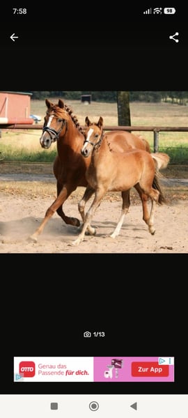 Verkauft wird ein wunderschönes Hengstfohlen mit Fohlenprämie. Wir freuen uns, Ihnen ein wunderschönes Reitpony x Vollblutaraber Fohlen aus diesem Jahr mit halbem Papier vom ZSSE anzubieten. Dieses bezaubernde Hengst stammt von einem Vollblutaraberhengt, der erfolgreich am 30-Tage-Test in Handorf teilgenommen hat und durch seine ausgezeichneten Eigenschaften überzeugt ab. Die Mutter des Fohlens ist eine Reitponystute mit sehr guten Grundgangarten. Unser Hengstfohlen wurde regelmäßig entwurmt, ist geimpft, hat bereits positive Erfahrungen beim Hufschmied gesammelt und wächst glücklich im Herdenverband auf den Wiesen auf. Es zeigt ein aufgewecktes und ausgeglichenes Wesen, perfekt für zukünftige Herausforderungen. Altersentsprechend ist es komplett roh und bereit, vielseitig gefördert zu werden. Endmaß des Fohlens vorraussichtlich ca. 148 cm. Für weitere Fragen oder zur Vereinbarung eines Besichtigungstermins stehen wir Ihnen gerne zur Verfügung.