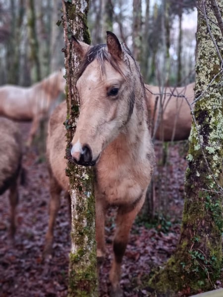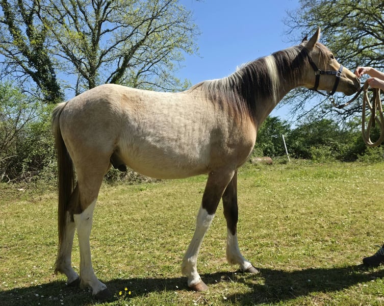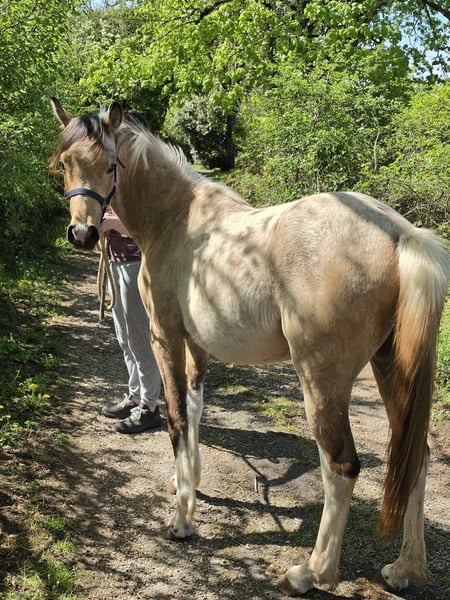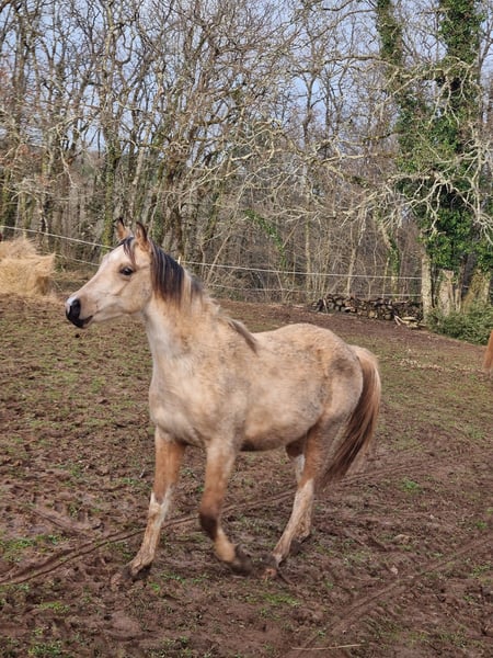 REA Organdi : rare poulain pleins papiers DSA (79,5% arabe reconnus) isabelle tobiano mâle né le 5 juin 2024 toise attendue un bon 1m55 suivi rigoureux depuis (et même avant) sa naissance. à jour vaccins, parages, vermifuges très bien manipulé âge parfait pour faire à sa main et créer une super relation caractère adorable REA Organdi: Rare, fully registered DSA colt (79.5% recognized Arabian blood), buckskin tobiano male born June 5, 2024 Expected height: a good 1.55m Rigorous monitoring since (and even before) his birth. Up-to-date on vaccinations, hoof trimming, and deworming Perfect age to develop his own style and build a wonderful relationship Lovely temperament