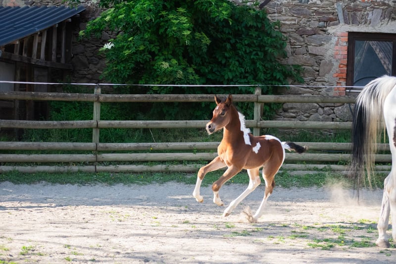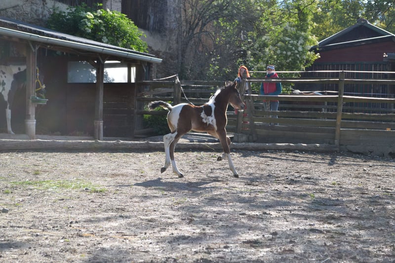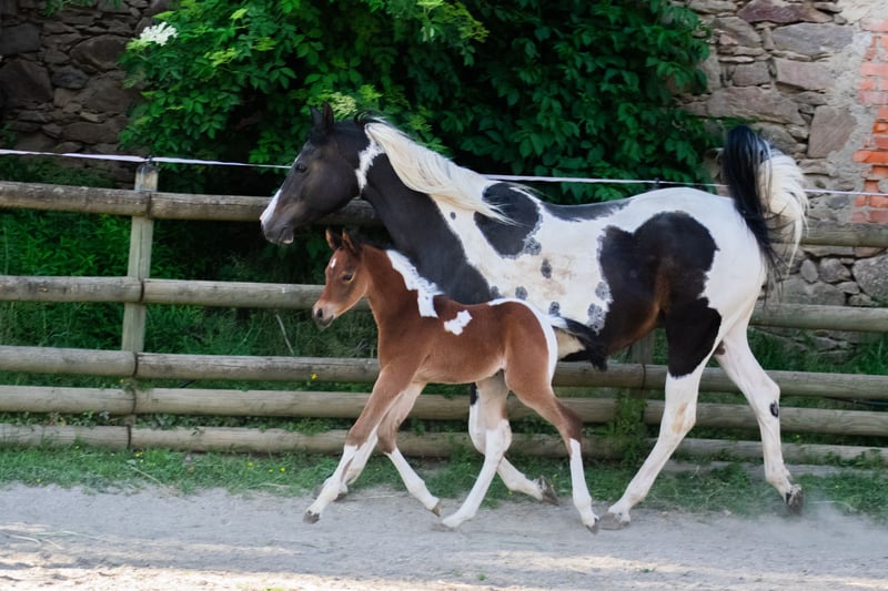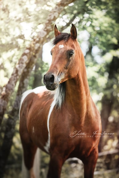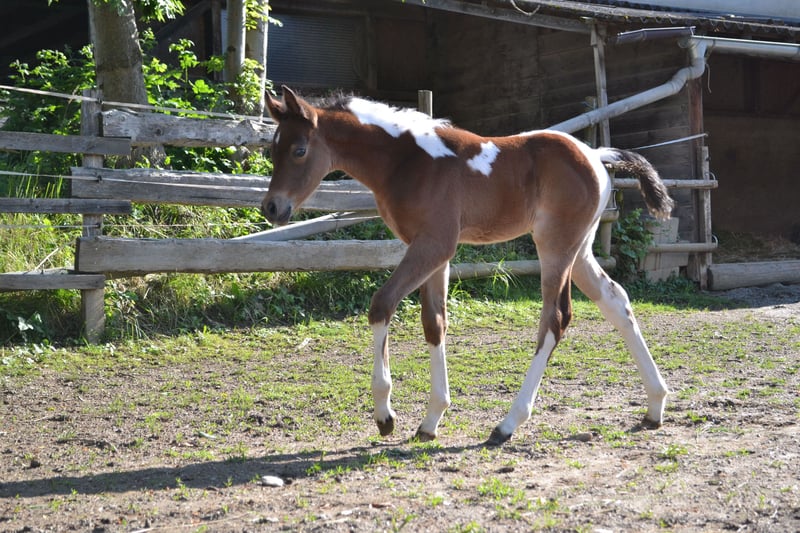 Notre poulain homozygote Pintabian "NCS Mr. Boombastic" cherche son humain pour (en) voler d’autres chevaux ♥ S: NorCal Sierra SnoMan 99,8 % AV (États-Unis) M: Rakastan Sinua 99,4 % AV (Finlande) Ce joli garçon a une attitude très amicale et curieuse. Selon le motto : « Être au cœur de l’action plutôt que de rester en retrait ». Il n’a peur de rien, est très curieux, vif, temperamenté, rapide et agile. Un petit concentré de puissance avec une belle action aux genoux. Un joli poney avec beaucoup de puissance derrière un petit arrière-train ferme. Ce jeune homme est idéal pour les cavaliers et éleveurs qui souhaitent s’orienter, par exemple, vers le concours complet. Allures + Courage + Structure exceptionnelle ♥ Et en plus, il est tobiano homozygote, ce qui signifie que tous ses foals, même ceux issus de juments arabes full blood de couleur unie, hériteront du gène du sabino. 99,6 % d’ADN arabe pur. Un beau bai foncé, typé et sportif, avec un joli motif pie. Issue d’un croisement exempt de SCID et CA. La mère, Rakastan Sinua, est une jument pintabian expressive et pleine de caractère, régulièrement bien évaluée lors de l’inscription au stud-book de l’ÖAZV (aucune note inférieure à 7). Le père, NorCal Sierra SnoMan, est multiple champion, approuvé trois fois HB1, ayant réussi avec brio l’HLP à Stadl-Paura, et père de nombreux foals hautement primés. Deux de nos chevaux de cœur qui nous offrent sans cesse de merveilleux foals. ♥ De plus, "Pezi" est un vrai clown, toujours partant pour s’amuser. Nous sommes convaincus que ce jeune garçon apportera beaucoup de joie, peu importe les défis qu’on lui proposera. Équitation de travail ? Attelage ? Chasse à courre ? Concours complet ? Randonnée en terrain varié avec obstacles naturels ? - c’est le cheval qu’il vous faut ♥ Et en plus, c’est un tendre qui adore être caressé pendant des heures... de préférence sur le popotin. :D Si vous cherchez un jeune poney arabe partbred (Pintabian) charmant, sportif et typé, n’hésitez pas à nous contacter et à venir nous rendre visite à Seeboden, au lac Millstätter. PS : Un jeune mâle avec un grand potentiel pour la reproduction Pintabian en Europe – intéressant autant pour les éleveurs que pour les cavaliers. Nous serions très heureux qu’il trouve une famille aimante et stimulante en tant que futur étalon, mais la reproduction n’est pas une obligation pour nous – un foyer respectueux du cheval et plein d’amour, en revanche, oui !