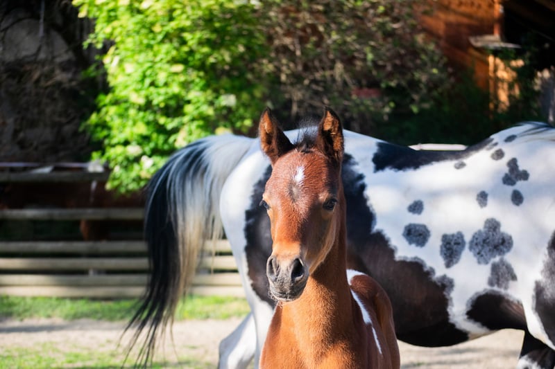 Our homozygous Pintabian colt "NCS Mr. Boombastic" is looking for his person to steal (other) horses ♥ Sire: NorCal Sierra SnoMan 99.8% Arabian (USA) Dam: Rakastan Sinua 99.4% Arabian (Finland) This handsome guy has a very friendly, curious nature. True to the motto: "In the thick of it instead of just being there." Not afraid of anything, totally curious, spirited, fast & agile. A little powerhouse with great knee action. A compact rear with plenty of power behind it. This boy is one for riders & breeders who want to pursue disciplines such as eventing. Gait + courage + great physique ♥ And he is also homozygous tobiano - which means that all foals, even with solid-colored Thoroughbred Arabian mares, will inherit the pinto gene. 99.6% Thoroughbred Arabian bloodline. A typical and sporty dark brown pinto. From a SCID & CA free pairing. Mother Rakastan Sinua is a gait-strong and very expressive Pintabian mare who has been consistently well-rated during the mare book inspection of the ÖAZV (no score below 7!). Father NorCal Sierra SnoMan is a multiple champion, 3-time HB1 approved, has successfully completed the HLP in Stadl Paura, and is the sire of many highly awarded foals. Two of our beloved horses that continuously give us simply enchanting foals. ♥ Additionally, "Pezi" is quite the jokester, always up for fun. We are sure that this young lad will bring a lot of joy, no matter what challenges you present to him. Working Equitation? Carriage driving? Fox hunting? Eventing? Trail rides with natural obstacles? - he is the man for it ♥ And on top of that, he is a cuddle bug who loves to be petted for hours.....preferably on his behind. :D If you are looking for a charming, sporty, typy young partbred Arabian (Pintabian), feel free to contact us and come visit us in Seeboden at Lake Millstatt. P.S.: A young stallion with great potential for Pintabian breeding in Europe - interesting for both breeders & riders alike. We would be very happy if he could find a wonderful, supportive home as a future breeding stallion - but breeding is not a must for us - a horse-friendly & loving home is!