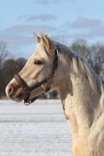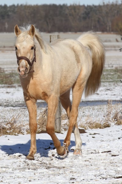 MSA Nadim *Prämienfohlen 2023* Partbred Araber 95,95 % AV Palomino geboren 31.03.2023 z.Zeit 154 cm Geschlecht: Wallach MSA Nadim ist ein vielversprechender Arabisch Partbred Wallach aus hochwertiger, leistungsgeprägter Anpaarung. Er verfügt über einen ox-Anteil von 95,95 %. Sein Vater ist der Vollblutaraberhengst Osborne ox, seine Mutter die Arabisch Partbred Stute Sweet Fairy in der Farbe Smoky Black Schecke. Nadim präsentiert sich in der seltenen Farbe Fuchsisabell (Palomino) und überzeugt durch ein edles, harmonisches Exterieur mit klarer arabischer Ausstrahlung. Er wurde mit der Fohlenprämie ausgezeichnet. Charakterlich zeigt er sich sehr souverän, freundlich und ausgeglichen. Er ist regelmäßig entwurmt und gegen Tetanus geimpft. Er kennt er den Longiergurt und wurde vorsichtig anlongiert. Verladen, Schmied sowie alltägliche Abläufe eines landwirtschaftlichen Betriebs ( Traktoren, Kühe usw.) sind ihm vertraut. Auch in neuen Situationen bleibt er ruhig, aufmerksam und kopfklar. Derzeit misst er etwa 1,54 m Stockmaß und ist altersgemäß korrekt entwickelt. Er befindet sich in artgerechter Aufzucht und bringt sehr gute Voraussetzungen als zukünftiges Sport- oder Freizeitpferd mit. Weitere Informationen werden bei ernsthaftem Interesse gern zur Verfügung.