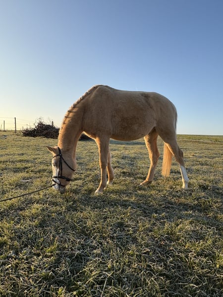 Sonderpreis bis zum 31.01.2026 Zum Verkauf: vielversprechender 4-jähriger Wallach Dieser äußerst freundliche und menschenbezogene Wallach überzeugt durch sein angenehmes Wesen und seine Lernbereitschaft. Er befindet sich derzeit im Anreiten und wird kontinuierlich weiter gefördert. Der Kaufpreis wird entsprechend seiner weiteren Ausbildung angepasst. Dank seiner Qualität und seines Charakters ist er sowohl für Dressur, Springen als auch Vielseitigkeit interessant. Aufgrund seiner Abstammung können wir ihn uns auch gut in der Westernreitweise vorstellen. Trotz seines noch jungen Alters zeigt er sich bereits jetzt zuverlässig und gelassen – auch als zukünftiges Kinderpony gut vorstellbar. Im Gelände präsentiert er sich alleine wie in der Gruppe souverän, nervenstark und unkompliziert. Er ist zudem verlade- sowie schmiedefromm. Eine AKU vom August 2025 liegt vor. Er ist seit Juni 2024 kastriert. Videos sende ich bei ernsthaftem Interesse gerne per WhatsApp zu. Passender Dressursattel kann für 2.300€ mit dazu gekauft werden.