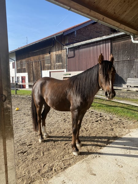 Amir is an exceptionally handsome, sensitive, and people-oriented gelding with a lot of charm. He has already been ridden both in the arena and in the field. During rides, he often accompanies us as a lead horse. Unfortunately, Amir has a mild issue at the origin of his fetlock joint, which means he is no longer suitable for intensive riding. However, he loves walks and groundwork. He is very eager to learn and would surely enjoy any additional attention or activities. This chestnut gelding is very affectionate, intelligent, and thrives with clear, loving handlers who appreciate gentle communication. He is currently kept in a small private paddock with family contact in the Chiemgau region, is barefoot, and well cared for. Only to the best, horse-friendly hands! Breed: Arabian Name: Amir ibn Ducor ox Born: July 6, 2017 Color: Chestnut Height: approximately 155 cm