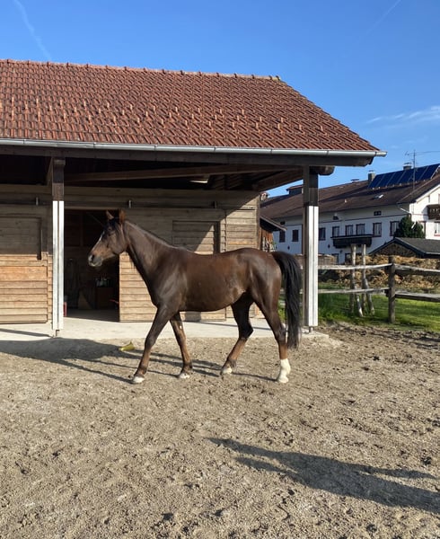Amir es un hermoso, sensible y muy sociable caballo de manada, lleno de encanto. Ya ha sido montado tanto en el paddock como en el campo. Durante los paseos, nos acompaña como caballo de compañía. Lamentablemente, Amir presenta una ligera problemática en la inserción del tendón del casco, por lo que ya no es apto para una monta intensiva. Sin embargo, disfruta de paseos y trabajo en el suelo. Es muy curioso y seguramente también apreciaría cualquier otra forma de atención y estímulo. Este caballo de color alazan es muy cariñoso, inteligente y se alegra de contar con personas claras, amorosas y que disfruten de una comunicación delicada. Actualmente, se encuentra en un pequeño paddock privado en la región de Chiemgau, con conexión familiar, sin herrar y bien cuidado en todos los aspectos. ¡Solo en manos de personas responsables y que cuiden del bienestar del caballo! Raza: Árabe Nombre: Amir ibn Ducor ox Nacimiento: 06.07.2017 Color: Alazán Altura: aproximadamente 155 cm