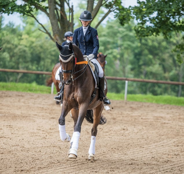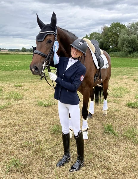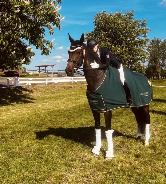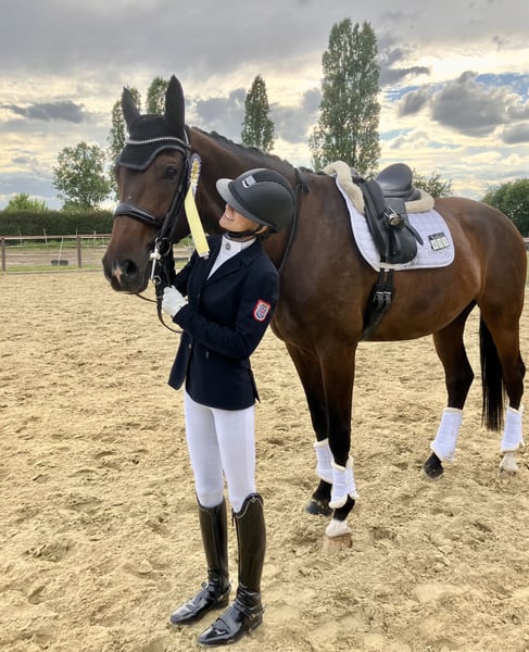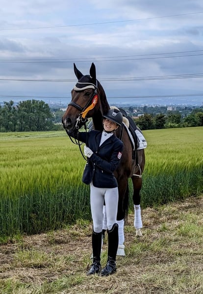 With a heavy heart, I am parting with my wonderful Rhinelander mare, born in 2015. She captivates not only with her elegant appearance, featuring endless long legs and expressive gaits, but is also a true heart horse. She has competed successfully in M-level dressage and has been placed multiple times. She is always motivated and gives her best in daily training for her rider. In handling, she proves to be a true dream. She is very affectionate, well-behaved in the field, and always strives to do everything right. As she means a lot to me, she will only be placed in the best and most loving hands, where she can continue to bring her new rider many wonderful moments. The sale is made solely for private reasons. Current X-ray images are available.