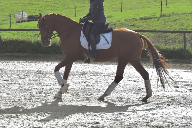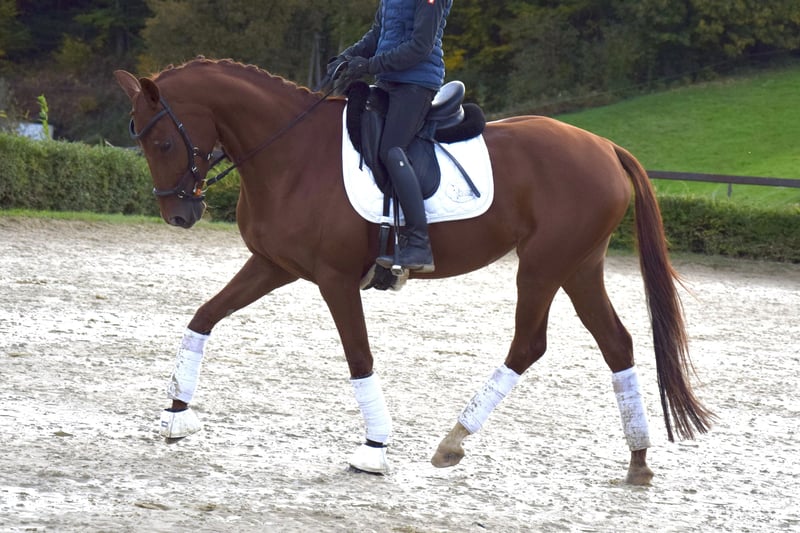 Ballerina is a 2015-born Rheinländer chestnut mare by Burma Gold xx x Der Dürer x Natiello xx. Her friendly and honest nature makes her very appealing to people. She loves attention and activity—whether grooming, groundwork, or going for walks/jogging—she enjoys it all. Ballerina is easy and gentle to ride, requiring a calm and sensitive rider. When this is provided, she brings her rider great joy and always wants to do her best. Working with her is simply fun. She is free of bad habits like bucking or rearing. For variety, Ballerina regularly goes out alone or with company for rides and does cavaletti work and show jumping exercises. The Rheinländer mare is used to spending her days in a group on the paddock or pasture. She comes directly from the breeder, is vaccinated, dewormed, and regularly presented to the farrier. Further information available upon request. Location: 42579.