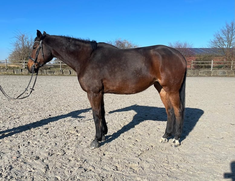 I would like to find a loving home for my 12-year-old Rhinelander mare named Roxy. I bought Roxy directly from the breeder in 2020. We have experienced a lot together, and now I hope to find someone who will cherish her as much as I have. Roxy is a horse with great basic gaits and a strong motivation to work with her rider. She has a healthy go—bucking, rearing, or running off are not her things. By the way, she is also very affectionate! In dressage, she has been trained up to level A, and she has already jumped A courses with the breeder. However, this has not been pursued further. Roxy prefers to go out in the field with a horse buddy, confidently leading the way and always showing reliability. Otherwise, we have tried a lot together: dressage, free jumping, groundwork, circus lessons, walking, and pole work. Roxy enjoys being in a herd and as much time outside as possible—that makes her happy! Under saddle, Roxy likes clear guidance—so she is not a pure beginner's horse. She is well-behaved when loading but also needs someone who can give her clear leadership. Unfortunately, due to a private accident, I can no longer ride pain-free and therefore wish for a loving forever home for Roxy. A few specifics: Roxy is currently with my trainer (Ricarda Bukowski) and is being worked with and ridden here. She has an equine sarcoid on her chest, which the veterinarian has described as a "cosmetic flaw"—it does not bother her and does not spread! In 2023, Roxy had a screw placed in her fetlock due to a cyst. This has been closely monitored by a veterinarian and is no longer a problem when riding or in everyday life. For these reasons, Roxy is being sold well below her value—but please only as a loyal leisure companion, as she is no longer suited for competition. I also do not want to sell Roxy solely as a show jumping horse, as she loves dressage and shows a lot of potential here! Roxy is not an emergency sale! She is only to be given to loving hands! Home before price! Equipment can be purchased for an additional fee (dressage saddle, bridle, etc.). Please inquire only if you are genuinely interested in Ricarda Bukowski (+49 1522 9390133).