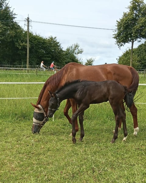 Elegant Rhineland mare for sale – ideal for dressage! The mare is four years old, backed, and has competed up to easy A dressage. She later went into breeding and has produced many beautiful foals with excellent temperaments. Silver premium awarded. She has successful full and half-siblings placed up to S* , **, and *** level in dressage. She has very good basic gaits and is still unexhausted. She is very gentle and easy to handle. For serious inquiries, we are happy to send a video. Please feel free to contact us with any further questions.