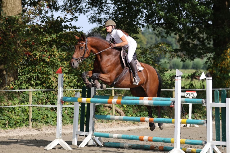 Zum Verkauf steht eine wirklich tolle Rheinländer Stute. Sie hat mir meinen größten Wunsch erfüllt, einmal ein M Springen zu reiten, obwohl ich wirklich nicht besonders mutig bin. **Merkmale:** - **Rasse:** Rheinländer - **Geschlecht:** Stute - **Geburtsjahr:** 2008 - **Farbe:** Brauner - **Stockmaß:** 168 cm Lerona hat vor meiner Zeit viel Erfahrungen bis zur schweren Klasse gesammelt. Sie hat mir viel Sicherheit gegeben und mich durch fast jeden Parcours sicher durchgetragen. Es fiel zwar mal eine Stange, dafür wusste ich das ich ins Ziel komme. Sie zeigt ein tolle Einstellung und ist sowohl für den Freizeit- als auch für den Turniersport geeignet. ACHTUNG ... aktuelles Video vom 08.11.2025.... ohne große Vorbereitung bin ich die Stute durch ein A** geritten und es war ein super Gefühl. Es fiel zwar eine Stange, aber das ist vielleicht dem mangelnden Training geschuldet. Man kann also im A Bereich sofort losreiten. Ein L würde sicherlich auch gehen. Ich würde die Stute auch gegen ein älteres Springpony für meine Tochter tauschen. Oder gegen ein Fohlen oder Jährling. Die Stute ist brav im Umgang, gut ausgebildet und hat ein freundliches Wesen. Ich wünsche mir für Sie eine neue Familie wo ihre tolle Persönlichkeit geschätzt wird. Ich kann Sie mir gut als Partner für einen Springeinsteiger vorstellen, der mit Ihr Spaß im E/A Bereich haben möchte. Der Preis ist klar verhandelbar!!! Ein tolles Zuhause hat hier absolute Priorität. Trotzdem werde ich Sie nicht verschenken. Da Ihre Mutter auch 145 sporterfolgreich ist, ihre Schwester bis 135 und Sie einem sehr interessanten Mutterstamm entspringt, kann ich mir Sie auch für die Zucht vorstellen. Sie soll bereits ein Fohlen gehabt haben. Bei Interesse oder weiteren Fragen stehe ich Ihnen gerne zur Verfügung. **Kontakt:** [Ihre Kontaktdaten] Ich freue mich auf Ihre Nachricht!