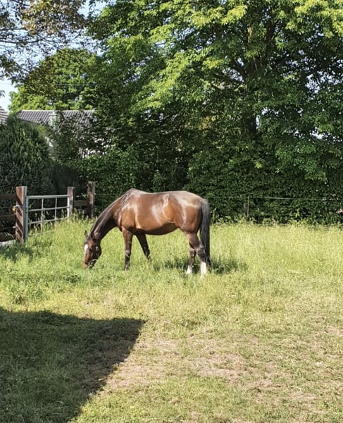 Aufgrund ihrer Abstammung auch gut für die Zucht geeignet Seit corona nur noch Freizeitmäßig zuhause auf dem reitplatz geritten, davor auf A-Niveau auch vereinzelt Turniere, kennt auch Geländehindernisse, leider aus Zeitmangel zu verkaufen