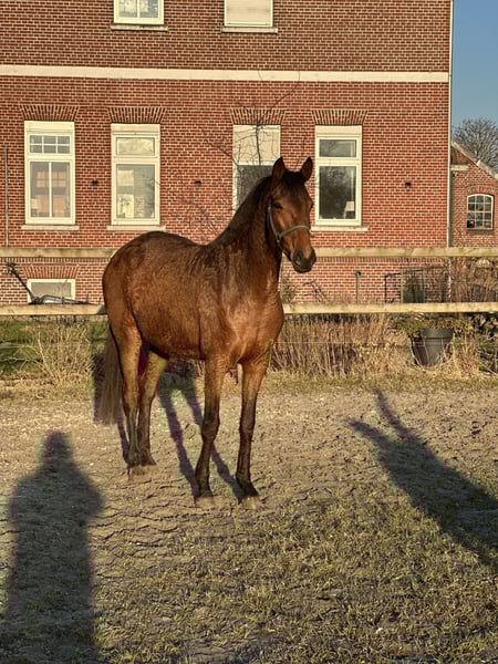 Hermosa yegua de menor tamaño, actualmente aproximadamente 1,60 m de altura. La yegua ha crecido en un grupo de yeguas y está bien socializada. Aún en fase de entrenamiento inicial. Pedigrí: Galaxy x San Amour https://www.horsetelex.de/horses/pedigree/2489805/sorelle