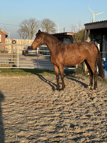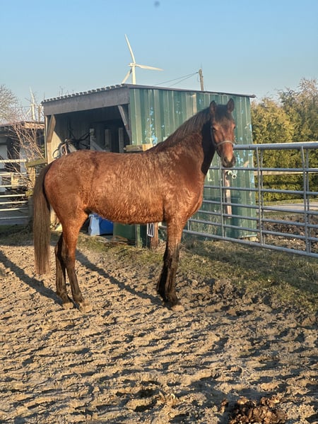 Schöne Stute im kleineren Rahmen derzeit ca. 1.60m groß. Die Stute ist im Herdenverband aufgewachsen und gut sozialisiert. Derzeit noch roh. Abstammung: Galaxy x San Amour https://www.horsetelex.de/horses/pedigree/2489805/sorelle