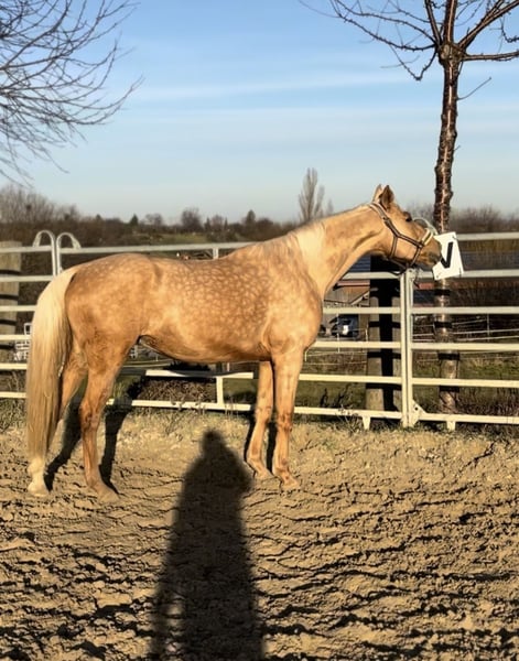 **Verkaufsanzeige: Rheinländer Stute, geb. 2020, Palomino, 166 cm, Dressur** Wir bieten eine elegante und vielversprechende Rheinländer Stute zum Verkauf an. Geboren im Jahr 2020, präsentiert sich diese Palomino-Dame mit ihrem strahlenden Erscheinungsbild und ihrer ansprechenden Größe von 166 cm. Sie wurde schonend angeritten und zeigte sich dabei stets brav. Die Stute hatte bereits ein Cremello Hengstfohlen. Dank ihres ausgeglichenen Charakters ist sie sowohl für fortgeschrittene Reiter als auch für junge Reiter mit Erfahrung interessant. Bei Interesse oder für weitere Informationen freuen wir uns auf Ihre Kontaktaufnahme. Ein persönliches Kennenlernen ist jederzeit möglich. Videos können bei ersthaften Interesse verschickt werden.