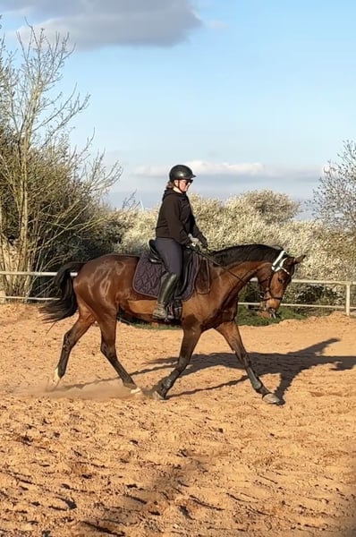 7-year-old mare for breeding purposes, due to personal circumstances. Lucy has been in my possession since she was 3 years old and is familiar with riding on the arena, indoor hall, or outdoor fields. (However, she can be somewhat challenging at times, which is why she is also being sold as a broodmare.) She loads perfectly into the trailer and is well-behaved at the blacksmith. Lucy is registered as a competition horse and is regularly vaccinated and dewormed. She has experience traveling longer distances in the trailer, having gone on holiday to the Netherlands twice. She is very people-oriented, affectionate, and loves groundwork exercises such as equikinetics, lunging with double longe, walks, etc. She is also ideal as a lead pony for rides in the terrain (walk, trot, and canter). Lucy is familiar with pole work, free jumping, and has previously jumped with a rider. She is a very sensitive little mare. Feel free to contact me with any questions. Videos can be provided upon request.