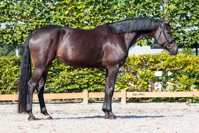 Demira, a mare born in 2017 with a highly interesting pedigree: Westphalian line 398. The direct line traces back to the DLG champion mare Radina, who is also a full sister to the highly successful stallion Renoir I in Westphalia. Other licensed stallions include Renoir II, Rockland, For Emotion, Forzamento, Damenstolz I and II. From this lineage come highly successful mares with outstanding mare performance tests, including the Bundeschampion 6-year-old Samira from 2007, who scored 9.7 and was the sensation of the BC that year. From this line, there are dressage and show jumping horses successful up to S-level, and from the mother Sadira, a son who has competed up to S-level. The sire is the internationally successful Grand Prix stallion Delatio by De Niro x Rubinstein. A pedigree filled with Grand Prix and stamp stallions, as well as the desired connection to show jumping blood through Cor de la Bryère. Sale on behalf of the breeder. For more information, feel free to contact by phone or WhatsApp at 0049172-1743163. Location: 5845 EJ Sint Anthonis