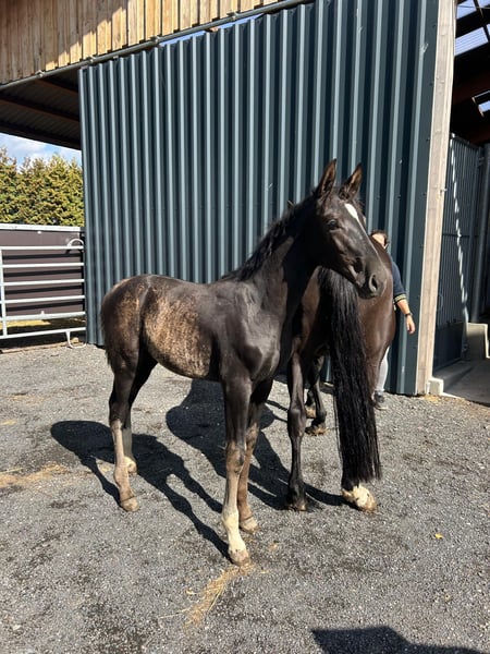 Very active colt for sale by Fiji. Fiji has produced top foals in a row this year and last year. A full brother from last year is staying in stallion breeding. Sale only because the current stock is too large. All siblings are highly respectable under saddle and of really good quality. The mare and foal are in professional breeding and are always well-fed and cared for. If you're interested, just get in touch - I can gladly share more about the mother and the siblings :) Half-sister and offspring are also on site.