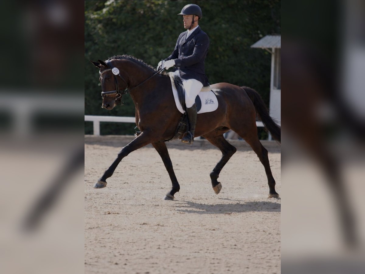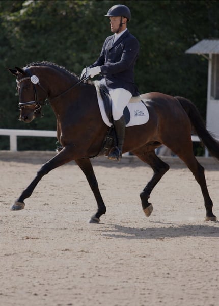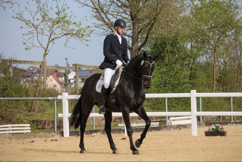 Zum Verkauf steht ein gut ausgebildeter dunkelbrauner Wallach, geboren im Jahr 2014. Er ist für den Dressursport geeignet und verfügt über eine solide Grundausbildung. Er zeigt eine angenehme Arbeitsbereitschaft und ist sicher in allen Lektionen bis zur Klasse S. Magico, so wie er bei uns liebevoll genannt wird, ist sowohl für fortgeschrittene Reiter als auch für ambitionierte Nachwuchsreiter geeignet. Neben der Dressur hat er auch Freude am Longieren, Ausreiten, Stangenarbeit und kleinen Sprüngen. Derzeit wird er nebenbei 1-2 mal pro Woche von einer Reitbeteiligung auf E-Niveau mitgeritten. Außerdem hat er sich bereits als ehrlicher Begleiter in Abzeichenprüfungen bewährt. Des Weiteren hat er täglich Auslauf, ist zaunsicher und herdenverträglich. Er ist aktuell M-Dressur platziert und wurde bereits in der S-Dressur sicher vorgestellt. Bei Interesse und für weitere Informationen stehe ich gerne zur Verfügung. Ein Probereiten ist nach Absprache möglich.
