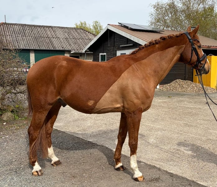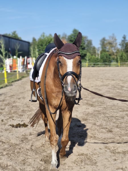 Zum Verkauf steht dieser schöne Wallach „Wunderlich“. Wunderlich ist ein 14-jähriger Fuchs und ca. 165 cm groß. Gleich zu Anfang ist gesagt, dass er nicht für Anfänger und ängstliche Reiter geeignet ist, da er ein umweltorientiertes und sensibles Pferd ist und somit einen sicheren Reiter braucht. Ich sehe ihn eher als Freizeitpferd, aber das ein oder andere Turnier habe ich mit ihm auch schon besucht. Er kennt Reithalle, Außenplatz, Freispringen, Stangenarbeit sowie den ein oder andern Ausritt etc. Er wurde bei mir dressurmäßig gearbeitet, da er sich beim Springen eher „panisch“ zeigt. Bocken und steigen kennt er nicht, aber es kann sein, dass er bei Unsicherheiten zur Seite wegspringt, ist dabei aber immer händelbar. Hufschmied und Tierarzt kennt er und ist dem anfangs etwas skeptisch gegenüber, aber mit der Zeit ist er entspannt dabei. Wunderlich ist ein Pferd mit dem Herz am rechten Fleck und braucht seine Bezugsperson. Wenn man sein Vertrauen gewonnen hat, fordert auch er seine Streicheleinheiten ein. Er läuft barhuf und wurde regelmäßig geimpft sowie entwurmt und osteopatisch behandelt. Zubehör kann bei Bedarf mit dazu erworben werden. Eine AKU ist aktuell nicht vorhanden, kann aber bei Interesse erstellt werden. Die Kosten übernimmt der potentiellen Käufer. Bei Fragen gerne melden. Um Reittourismus auszuschließen, nehme ich 15€ für das Probereiten, welche beim Kauf berücksichtigt werden. Ich werde ihn nur abgeben, wenn er ein super zu Hause bekommt und ich ein gutes Gefühl habe. Es ist kein Notverkauf.