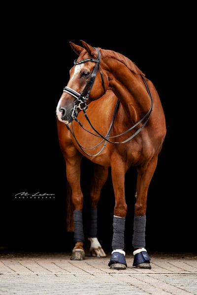 Due to time constraints, a stunning Rhineland gelding born in 2011 is for sale. He stands at 172 cm and draws attention with his impressive expression and strikingly colorful blaze. Quentin is a very likable and lively gelding, who is pleasantly sensitive and reliable in his training. He is trained up to the S** level, with the ability to perform Pi and Pa in training as well. Over the last two years, he has achieved placements from A* to S** with amateurs and complete dressage newcomers. His trot and canter are well above average. He can be ridden easily by small children and also handles small jumps or trail rides with anxious riders. However, he should have an experienced companion by his side who can provide him with enough calmness in various situations, as he can be a bit spooky at times (no bucking or similar! Just a little startled!). I can envision him as a teacher in the A to M level, or as a partner for relaxed trail rides and excellent, high-level dressage work at home. Quentin is manageable in every situation. Currently, he spends his days in a mixed herd in the pasture but also needs time alone at night in his box. He is regularly vaccinated and dewormed. Current X-rays are available. Due to a finding, he is being sold well below his value. However, this has never limited him, and he is in normal training. Here, quality takes precedence over price! I hope to find him a "forever home." If you are interested or would like more information, please feel free to contact me at 01782397644!