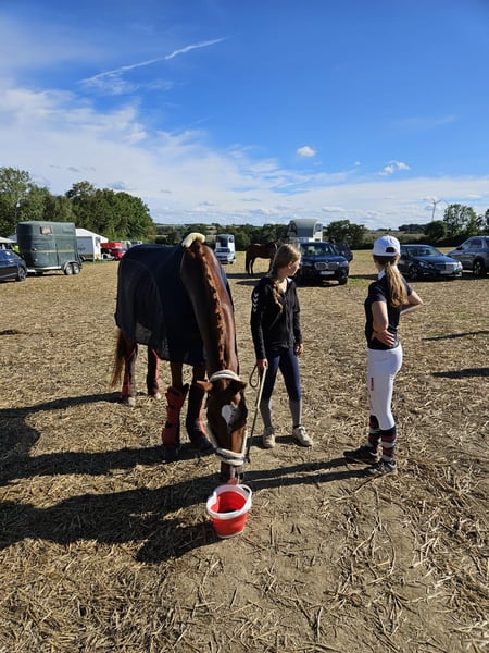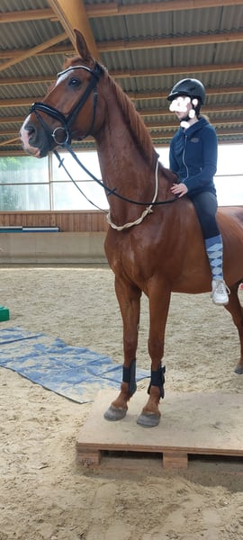 Debido a falta de tiempo, se pone a la venta un hermoso caballo de raza Rheinländer, nacido en 2011. Mide aproximadamente 172 cm de alzada y llama la atención por su expresión y su llamativa blesse de colores vivos. Quentin es un caballo muy simpático y despierto, que se muestra agradablemente sensible y seguro en la doma. Está entrenado hasta la categoría S**, y también se pueden solicitar ejercicios de Pi y Pa en entrenamiento. En los últimos dos años, ha obtenido clasificaciones desde A* hasta S** con jinetes amateurs y principiantes en doma clásica. Su trot y canter están muy por encima de la media. Se deja montar fácilmente por niños pequeños y también puede superar pequeños obstáculos o realizar paseos por senderos con jinetes temerosos. Sin embargo, se recomienda que siempre lo acompañe un jinete experimentado que pueda transmitirle tranquilidad en diferentes situaciones, ya que puede asustarse ocasionalmente (¡sin rehusar, nada de cabalgar a galope o saltar con él si no es un jinete experimentado!). Podría imaginarlo como un maestro para clases desde A hasta M, o también como compañero para paseos relajados por senderos y buena, alta doma en casa. Quentin es muy manejable en cualquier situación. Actualmente, pasa el día en un potrero con una manada mixta, pero también necesita tiempo a solas en su box durante la noche. Está vacunado y desparasitado regularmente. Se disponen de radiografías recientes. Debido a una condición de salud, se vende a un precio claramente por debajo de su valor real. Sin embargo, esto nunca le ha limitado y sigue en entrenamiento normal. ¡Aquí prima la calidad sobre el precio! Mi deseo es encontrarle un lugar para siempre. Para más información o si está interesado, no dude en contactarme al 01782397644.
