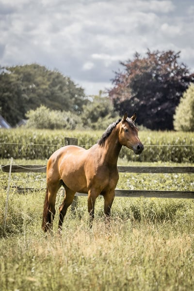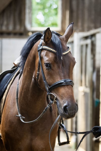 Met pijn in mijn hart zoek ik een nieuw thuis voor mijn droompaard. Hij is 5 jaar oud, heeft een schofthoogte van 1,64 m en een solide en vooral robuuste afstamming (Rüter van Ramiro x Landgraf I / Cor de la Bryere en moeders vader afstammend van Contender I x Florestan I). Junior is long gereden en onder het zadel. Helaas ben ik door blessures al bijna 2 jaar steeds weer uit de running en kan ik dit jonge paard niet meer de aandacht geven die het verdient. Daarom kies ik hier duidelijk voor het paard, ook al valt het me heel zwaar. Junior kent kinderen, honden, tractoren en is absoluut probleemloos bij de smid. Ook afspuiten is voor hem geen probleem. Junior is bij het werk gemakkelijk en leergierig. Momenteel ligt mijn focus op de grondwerk, omdat hij daar echt plezier in heeft. In het dagelijks leven kan hij ook door kinderen worden behandeld, maar vanwege zijn leeftijd en opleidingsniveau is hij geen beginnerspaard. Junior is een zeer mensgericht paard, begroet me hinnikkend op de wei en wil het liefst altijd dicht bij ons zijn. Ik wens voor hem een empathische, veelzijdige, ambitieuze partner die hem de tijd geeft die hij nodig heeft en de aandacht die hij verdient. Hij zou in een leuke kudde moeten komen, waar zoveel mogelijk leeftijdsgenoten zijn om mee te spelen. Hij is natuurlijk jaarlijks gevaccineerd en regelmatig ontwormd. Zijn recent aangepaste Stübben zadel kan ook worden aangeschaft. Meer foto's of video's (ook als veulen) kunnen op aanvraag worden gestuurd.