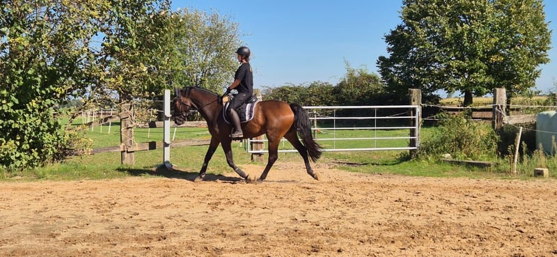 Schweren Herzens suche ich ein neues Zuhause für mein Traumpferd. Er ist 5 jahre alt, hat ein Stockmaß von 1,64 m und eine solide und vorallem robuste Abstammung (Rüter von Ramiro x Landgraf I / Cor de la Bryere und Muttervater abstammend von Contender I x Florestan I.). Junior ist longiert und angeritten. Leider falle ich verletzungsbedingt seit fast 2 Jahren immer wieder aus und werde damit dem jungen Pferd nicht mehr gerecht. Darum entscheide ich hier klar Pro-Pferd, auch wenn es mir sehr schwer fällt. Junior kennt Kinder, Hunde, Traktoren und ist absolut unkompliziert beim Schmied. Auch abduschen ist für ihn kein Problem. Junior ist bei der Arbeit unkompliziert und lernwillig. Aktuell habe ich die Bodenarbeit im Fokus, da er daran wirklich Spaß hat. Im Alltag lässt er sich auch von Kindern händeln, ist aber aufgrund des Alters und Ausbildungsstandes kein Anfängerpferd. Junior ist ein sehr menschenbezogenes Pferd, begrüßt mich wiehernd auf der Wiese und möchte am liebsten immer ganz nah bei uns sein. Ich wünsche mir für ihn einen einfühlsamen, vielseitigen, ambitionierten Partner, der ihm die Zeit gibt, die er braucht und die Zuwendung, die er verdient. Er sollte in eine nette Herde kommen, in der es möglichst gleichaltrige Spielkollegen gibt. Er ist natürlich jährlich geimpft und regelmäßig entwurmt. Sein kürzlich angepasster Stübben Sattel kann auch erworben werden. Weitere Bilder oder Videos (auch als Fohlen) können auf Anfragen geschickt werden.
