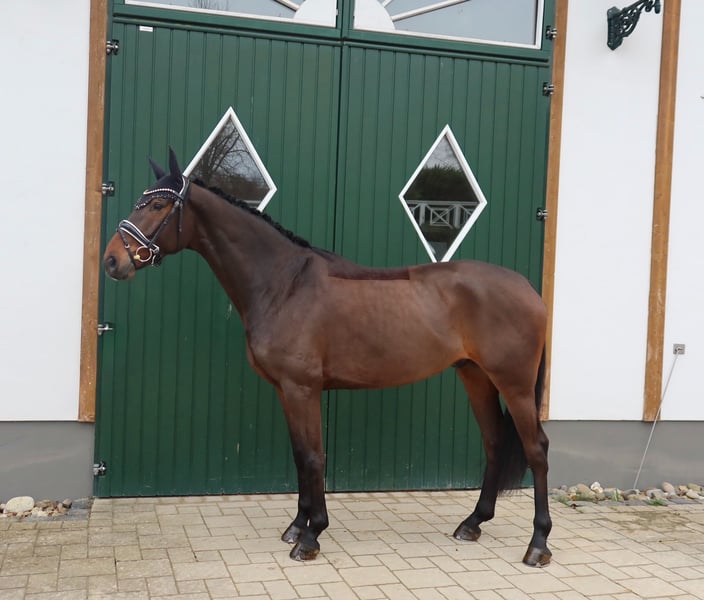 For sale is this handsome 5-year-old all-rounder sired by Si Senor M out of Lord Loxley, who provides great pleasure both in the dressage arena and over jumps! Recently placed in Dressage Horse Class A, he consistently demonstrates focus and eagerness to learn in the ring, so he is sure to achieve further successes next year. Playfully quick and intelligent, he has already learned several movements, such as shoulder-in, and will soon be ready to compete in class L. He also shows great talent in show jumping and can definitely participate in competitions next year. He handles well and is cautious, making him a pleasure to ride. Overall, he is a truly uncomplicated horse who remains completely relaxed in any situation—whether at competitions, at home, in the field, with the farrier, or during transport. He is a very social type who enjoys human attention as well as the company of other horses. If you are looking for a high-quality, clear-headed horse that brings daily joy, "Salza" is the perfect choice. Due to his versatile aptitude, we can also easily see him excelling in eventing. Excellent X-ray images are available. "Salza" is located in 35708 and can be visited and tested at any time. For inquiries and further questions: +49 176 20052380, also available via WhatsApp. Price negotiable for quick transaction.