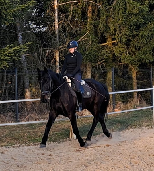 Afrodyta- Schlesier Stute mit Vollabstammung und Hauptzuchtbuch 4 j.a. 1,68m. Sie ist eine wunderschöne schlesische Stute, geboren im Jahr 2022. Mit ihrem eleganten dunkeler-Fell und einem Stockmaß von 168 cm ist sie nicht nur ein Blickfang, sondern auch ein nettes Dressurpferd.Sie geht auch in der Kutsche- ist 2-spännig gefahren. Diese Stute zeichnet sich durch ihre freundliche und aufgeschlossene Art aus. Sie ist gut erzogen, brav im Umgang, kennt Hunde und Katzen. Ihre Bewegungen sind geschmeidig und ausdrucksstark. Tolles Freizeitpferd. Die Stute ist gesund, barhuf und Herdenverträglich. Bei Interesse oder weiteren Fragen stehe ich gerne zur Verfügung. Besichtigungen und Probereiten sind nach Absprache möglich. Standort nähe Görlitz.
