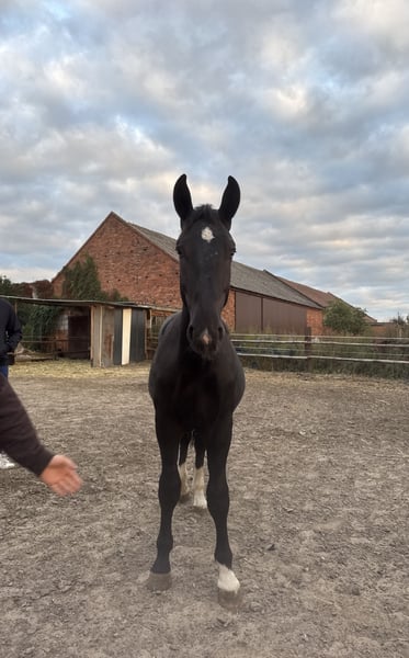 A one-and-a-half-year-old Silesian stallion, born on June 1, 2024. He has a passport with complete Silesian pedigree. Very friendly and curious. Always approaches people in the paddock. Daily paddock time. Beautiful coat – three socks and a star on his forehead. Unique Roman nose. Regularly trimmed. Current height: 156 cm. He will be a large horse. I can send videos via WhatsApp. Father is in the second-to-last photo, mother is in the last photo. Father’s height: 165 cm. Mother’s height: 168 cm.