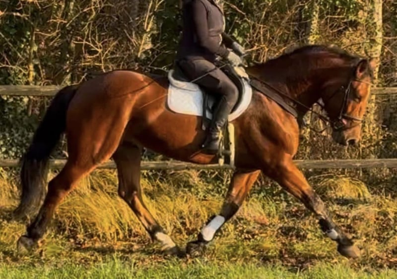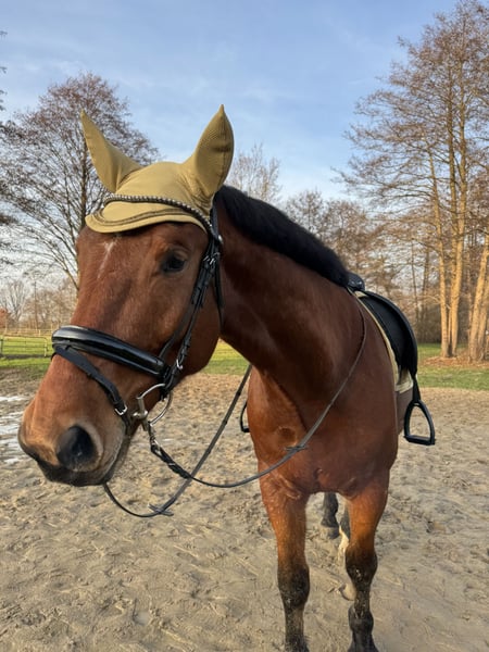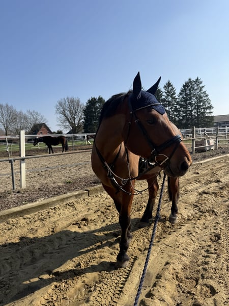 Schweres Warmblut / Schlesier Wallach – vielseitiger Freizeitpartner mit Kutschenerfahrung Zum Verkauf steht ein im Juni 2020 geborener Wallach (Schlesier / schweres Warmblut) mit einem Stockmaß von ca. 167 cm. Der Wallach ist freizeitgeritten und arbeitet solide in der Dressur. Kleine Sprünge meistert er problemlos und geht in der Gruppe oder mit einem Begleitpferd ins Gelände. Kühe oä. sind kein Problem. Zudem wurde er bei seinem Vorbesitzer sowohl ein- als auch zweispännig vor der Kutsche gefahren. Er lässt sich problemlos verladen. Er ist ein ranghohes Pferd und benötigt einen erfahrenen, sicheren Reiter, der ihn korrekt zu arbeiten weiß. Er zeigt sich dabei als ehrliches, aber sensibles Pferd, das eine klare und konstante Bezugsperson schätzt und nicht gerne von ständig wechselnden Reitern geritten wird. Daher ist er nicht geeignet für Kinder, Anfänger oder Wiedereinsteiger und wird ausdrücklich nicht als Schul- oder Voltipferd abgegeben. Gesucht wird ein ambitionierter Reiter, der ihn weiter fördert und ihm die nötige Sicherheit gibt. Trotz seiner kräftigen Statur ist er kein Gewichtsträger und muss korrekt geritten werden. Haltung & Bedürfnisse: Offenstallhaltung wird bevorzugt Boxenhaltung nur bei täglichem ganztägigen Auslauf mit Artgenossen Versteht sich mit Stuten als auch mit Wallachen Benötigt dauerhaft Zugang zu Raufutter (sonst Futterstress) Heu/Gras Gesundheit & Pflege: Regelmäßig geimpft und entwurmt Zähne zuletzt im Februar 2026 gemacht Osteo war 2025 zweimal vor Ort, da war alles super Schmied kommt alle 8 Wochen, aktuell barhuf (zuvor 4-fach beschlagen, zuletzt 2024) Keine bekannten gesundheitlichen Einschränkungen Ein Probereiten ist jederzeit möglich und gewünscht. Gerne auch öfter um das Pferd besser kennenzulernen. Hierfür wird eine Gebühr von 20€ erhoben, um Reittourismus zu vermeiden. Für ein Vor- und Probereiten 35€ Die Kosten werden selbstverständlich bei Zusage mit dem Kaufpreis verrechnet. Der Wallach wird nur in fördernde und passende Hände abgegeben. ES GILT PLATZ VOR PREIS. Ein Startpaket mit Zubehör (Trense, Halfter etc.) ist inklusive. Weiteres Zubehör wie ein neuer auf ihn angepasster Dressursattel 17,5" von Passier, sowie sämtliche Decken können gegen Aufpreis übernommen werden.
