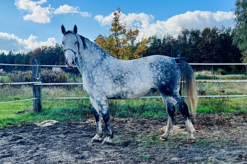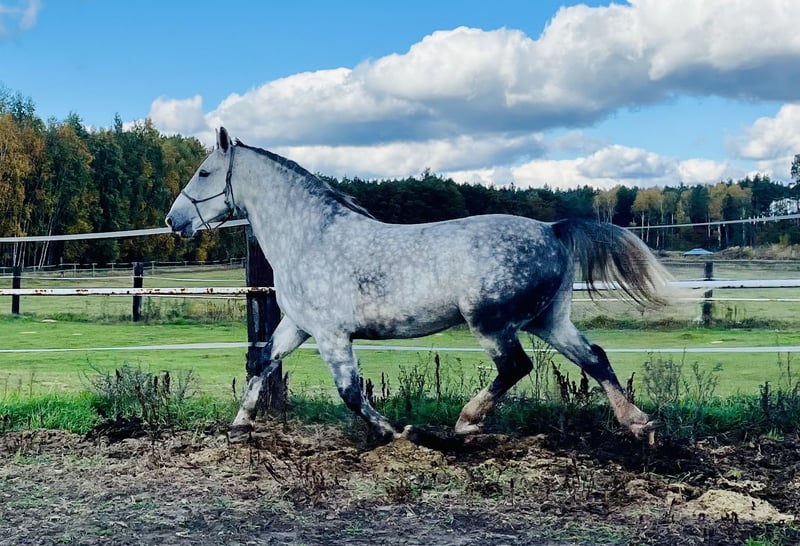 For sale: a beautiful Ślaski gelding, born in 2018. Charming dapple gray coat – 16.1 hh, perfect for driving and trail riding. An ideal partner for recreation and training. Very gentle temperament. Please contact us for more information!
