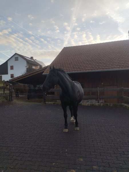 Hallo Interessenten, wir bieten hier unseren Bosman an. Diesen haben wir im Jahr 2021 in unsere Familie geholt als Freizeitpferd. Durch Tragische Änderung der Lebensumstände ist uns zwar die Versorgung möglich, aber nicht mehr die benötigte Reiterliche Aufmerksamkeit um ihn zu fordern und zu fördern wie es in seim Alter nun nötig wäre. Bosman ist ein Freund fürs Leben. Er ist verschmust, eine liebe Seele und sucht einfach jemanden der für Ihn nun die nötige Aufmerksamkeit aufbringen kann. Bosman ist 1,67 m im Stockmaß. Er ist 2018 geboren. Und ein schlesisches Warmblut. Er wurde von uns selbst eingeritten. War aber nie in einem professionellen Beritt. Bosman läuft schon immer Barhuf oder mit Hufschuhen. Kennt alle Stallformen wie Offenstall, Boxenhaltung gemischte Herden und getrennte Herden. Er eignet sich durchaus als Anfänger Pferd aber er weiß auch sich durchzusetzen daher braucht er eine klare Führung. Bosman ist sicher im Gelände und unerschrocken gegenüber anderen Tieren und Pferden denen man beim Ausritt in der Natur begegnet. Er kennt sowohl Reiter Rallyes als auch den Reitplatz, zudem ist er Verladefrom. Ausreiten mit fremden Pferden ist auch überhaupt kein Problem hier benimmt er sich und ist einfach Zucker ! Aufgrund der Lebensumstände ist 2025 Bosman leider zu kurz gekommen. Hier hat er einige Pfunde zugenommen und ist somit etwas außer Form geraten. Durch diese Umstände zeigte er das erste Mal eine Auffälligkeit Hinsicht Schubbern an der Mähne. (siehe Bilder) Die Jahre zuvor ist dies nicht aufgetreten. Ansonsten war sein Gesundheitszustand immer einwandfrei. Bosman besitzt alles was man sich wünscht. Zusätzlich besitzt er eine komplette Ausrüstung wie z.b. Hochwertiger Wanderreitsattel von Beuber, Hufschuhe, Decken, Schabracken und jegliches Zubehör in alles Ausführungen. Wir wünschen uns für Bosman ein gutes und liebevolles Zuhause zu finden bei dem er die Aufmerksamkeit bekommt die ihm nun Zusteht. Weitere Infos können gerne telefonisch angefragt werden. Reitplatz für Probereiten vorhanden. Bosman steht in 64720 Michelstadt - Weiten Gesäß