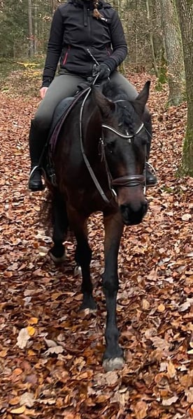 Elegant Trakehner Mare for Sale Available is a stunning dark brown Trakehner mare, born in 2016, standing at 15.6 hh. She is ideally suited for dressage or working equitation and demonstrates considerable talent along with a calm, cooperative demeanor. This reliable and confident mare is perfect for ambitious riders who can provide her with security and guidance. She is healthy, regularly vaccinated, and well-trained. Please feel free to contact me for further information or to arrange a viewing.