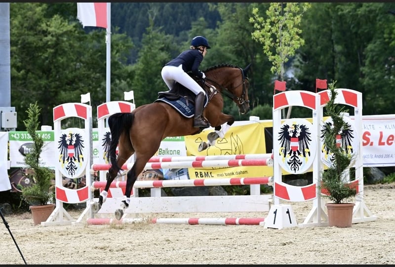 I am selling my 9-year-old Trakehner mare. She is very eager to perform, has extensive competition experience, and is highly talented over fences. Unfortunately, due to time constraints, I need to part with my trusted partner. She is reliable both in training, at competitions, and during hacking. I have competed her up to level A in eventing, with nearly every start resulting in a placing or victory. Thanks to her bloodlines, she is suitable for international competitions as well as show jumping events. However, she is not an ideal horse for beginners. Her dam, Oh Lala, competed internationally in eventing, and her sire, Desirao xx, is well known for passing on jumping talent and excellent jumping technique. Optima would also be of interest for breeding. She is the winner of the Trakehner mare licensing for show jumping and half-bred horses. Additionally, she is a premium mare of the Trakehner Verband.
