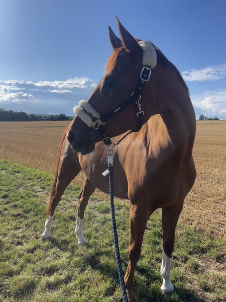 Wir suchen für unsere Stute ein 5**** Zuhause. Sie ist der optimale Freizeitpartner für Pferdemenschen, die nicht täglich in der Halle oder auf dem Platz reiten möchten. Sie ist perfekt für alle, die gerne ins Gelände gehen, lange Spaziergänge machen, Spaß an der Bodenarbeit und an Gelassenheitsparcours haben. Wer sein Kind oder Enkelkind langsam und sicher an den Umgang mit dem Pferd gewöhnen möchte, ist bei ihr genau richtig. Jeder, der einfach eine ganz tolle Begleiterin in der Freizeit sucht, darf sich gerne bei uns melden. Ambitionierte sport-und Freizeitreiter sollten weiterklicken. Ranke ist eine wunderschöne Trakehnerstute und hat wirklich ein Herz aus Gold. Da sie sich, vermutlich schon im Fohlenalter, eine Verletzung am Nackenband zugezogen hat, die sie nicht sonderlich beeinträchtigt, verkaufen wir sie als bedingt reitbar. Sie geht für Ihr Leben gerne ins Gelände (egal ob mit oder ohne Sattel), badet und planscht im Bach. Leicht Arbeit in der Halle, sowie kleine Sprünge unter dem Reiter kennt sie ebenfalls. Dabei zeigt sie sich brav aber temperamentvoll = daher KEIN Anfängerpferd. Sie hat keine Unarten wie Steigen, Bocken, wildes Durchgehen, etc. aber Trakener eben. In der Bodenarbeit zeigt sie sich sehr bemüht alles richtig zu machen und beim Gelassenheitstraining siegt bei ihr immer die Neugier, statt der Angst... 2023 und 2024 hat sie uns 2 bildschöne Stutfohlen geschenkt. Beide bewegen sich toll und sind charakterlich ganz die Mama. Sie steht bei uns mit 3 weiteren Stuten auf der Koppel und ist auch hier sehr sozial und artig. Es handelt sich hier um keinen Notverkauf!!! Bitte nur ernsthafte Anfragen! Bitte kontaktieren Sie mich nur telefonisch (werktags ab 13 Uhr) oder per WhatsApp.