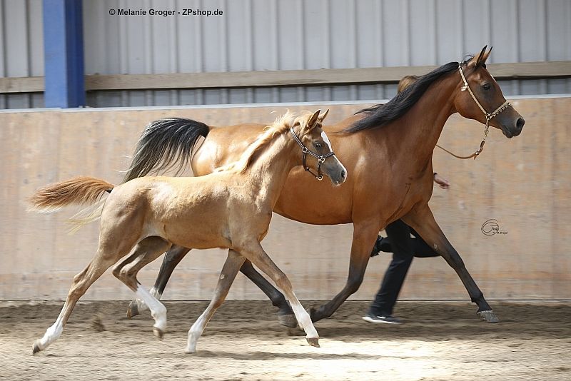 Solo a causa della cessazione della pura allevamento di purosangue arabi, cediamo questa ultima fattrice in mani rispettose. Valutata e premiata nel VZAP, non è ancora registrata nel Verband Trakehner. È una figlia del multichampion Bolero EM e della fattrice Elite e Trakehner GP Qair un Nissa, figlia del campione del mondo Kubinec. Ha un ottimo sangue prevalentemente russo/spagnolo. Qapuera è estremamente tipica, con movimenti potenti e un corpo eccellente e una buona struttura. Ha avuto tre puledre premiate. Una delle sue figlie - Camar Cadiz da Pechaton ox - ha prodotto quest'anno un puledro campione altamente valutato dal Trakehner Painters Maxim, che ha vinto il ring dei puledri di sangue speciale al campionato di Graditz. Qapuera ha quest'anno una bellissima puledra premiata dal cavallo Elite Arian Shah ox al suo fianco, che è anche approvato nel Verband Trakehner e padre, tra gli altri, del cavallo approvato Bahrain. Anche questa puledra è in vendita. Qapuera è gentile nel maneggio, a volte un po' nervosa e può tessere un po' sotto stress. Non morde, non calcia, ecc. Conosce il pascolo 24 ore su 24 in estate e box/paddock in inverno. Non è dominante nel branco. Nessun comportamento scorretto in stalla. Conosce l'inssemmazione, l'ecografia, ecc. Non è adatta per l'irrequietezza di un grande maneggio. Saremmo felici se qualcuno decidesse di includere questa bellissima fattrice nel proprio programma di allevamento.