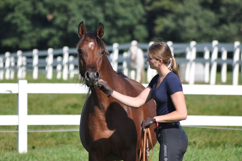 Por motivos de la discontinuación de la cría pura de caballos árabes de pura raza, entregamos esta última y valiosa yegua de cría a un nuevo propietario que la valore adecuadamente. Está altamente valorada y premiada en el VZAP, aunque aún no está inscrita en la Asociación de Trakehner. Es hija del multiganador Bolero EM y de la yegua de élite y GP de Trakehner, Qair un Nissa, por el campeón mundial Kubinec. Tiene una línea mayoritariamente rusa y española de excelente calidad. Qapuera es extremadamente typy, con un movimiento potente y un cuerpo de excelente conformación y buen fundamento. Ha tenido tres potrancas premiadas. Una de sus hijas, Camar Cadiz, por Pechaton ox, presentó este año en el Trakehner Painters Maxim un potrillo de alto rendimiento, calificado como campeón en la competición de Graditz, donde ganó la categoría de potros de sangre especial. Este año, Qapuera también tiene una preciosa potranca premiada, por el semental de élite Arian Shah ox, que está en proceso de inscripción en el Verband, y que además es padre, entre otros, del aprobado Bahrain. También esta potranca está en venta. Qapuera es dócil en el manejo, aunque a veces un poco nerviosa y puede entrecerrar los ojos en situaciones de estrés. No muerde ni patea. En verano, está en pasto las 24 horas, y en invierno en box y paddock. No es dominante en la manada y no presenta problemas de establo. Conoce la inseminación, ultrasonidos, etc. No es adecuada para un establo de gran volumen y movimiento. Nos encantaría que alguien pudiera integrar esta hermosa y valiosa yegua en su programa de cría.