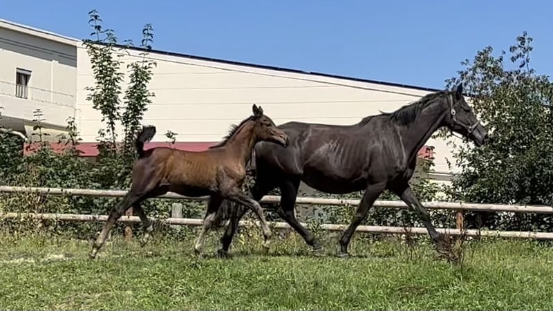 Typowa ciemnogniada klaczka, córka Karl Lagerfeld, z matką o czarno-złotym umaszczeniu, urodzona. Posiada wyrazisty typ, jest bardzo muskularna i o dużej budowie ciała, z dynamicznymi podstawowymi chodem. To oferta zarówno dla hodowcy, jak i jeźdźca sportowego, kandydatka na championaty, po wysoce udokumentowanym, sportowo ukierunkowanym rodowodzie. Ojciec, Karl Lagerfeld, przeszedł przekonującą próbę wytrzymałości z wysokimi wartościami użytkowymi. Również w konkursach skoków i ujeżdżenia zawsze kończył jako zwycięzca lub wysoko plasujący się. Jego sukcesy w konkursach ujeżdżeniowych klasy L zapewniły mu kwalifikację na Mistrzostwa Świata Młodych Koni w Verden. W wieku 4, 5 i 6 lat zakwalifikował się do Niemieckiego Mistrzostwa Młodych Koni, wielokrotnie plasując się na medalowych pozycjach. Matka klaczki również ma doskonałe pochodzenie, z licznymi znanymi reproduktorami w rodowodzie! Młoda klaczka już teraz zachwyca swoim urokiem, charyzmą i jakością ruchu! Przestronny krok i stęp z dobrym wybiciem z zad, płynne ruchy przez ciało! Do tego piękna i o dobrym charakterze, ciekawa świata i pełna życia! Uważamy, że to potomstwo Trakehnera, które kiedyś pokaże się w parkurze! Dostępne wideo na życzenie! Transport na terenie Niemiec możliwy po pokryciu kosztów, po odsadzeniu.