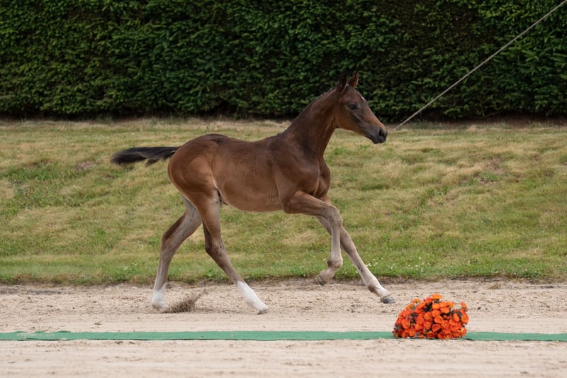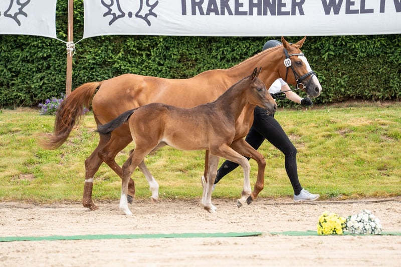 Runenmelodie O embodies athleticism and attributes shaped by blood in nearly perfect form! In her nobility, the prominence of her body parts, and the energetic movements described equally by rhythm and momentum, she is an impressive ambassador of her bloodline genetics. She is one of the very few daughters of the first-class performance-bred Ostinato xx, who has made a good name for himself in the eventing scene despite a limited breeding effort (e.g., as the sire of the eventing stars A la carte and Oskar). On the maternal side, the strong, also highly proven in eventing, son of Zauberklang, Sedar, adds to her pedigree, along with Seratino xx, another bloodline well-established in sport horse breeding. Runenmelodie O has emerged from the traditional successful lineage of Riegelstellung, making her particularly interesting for breeding.