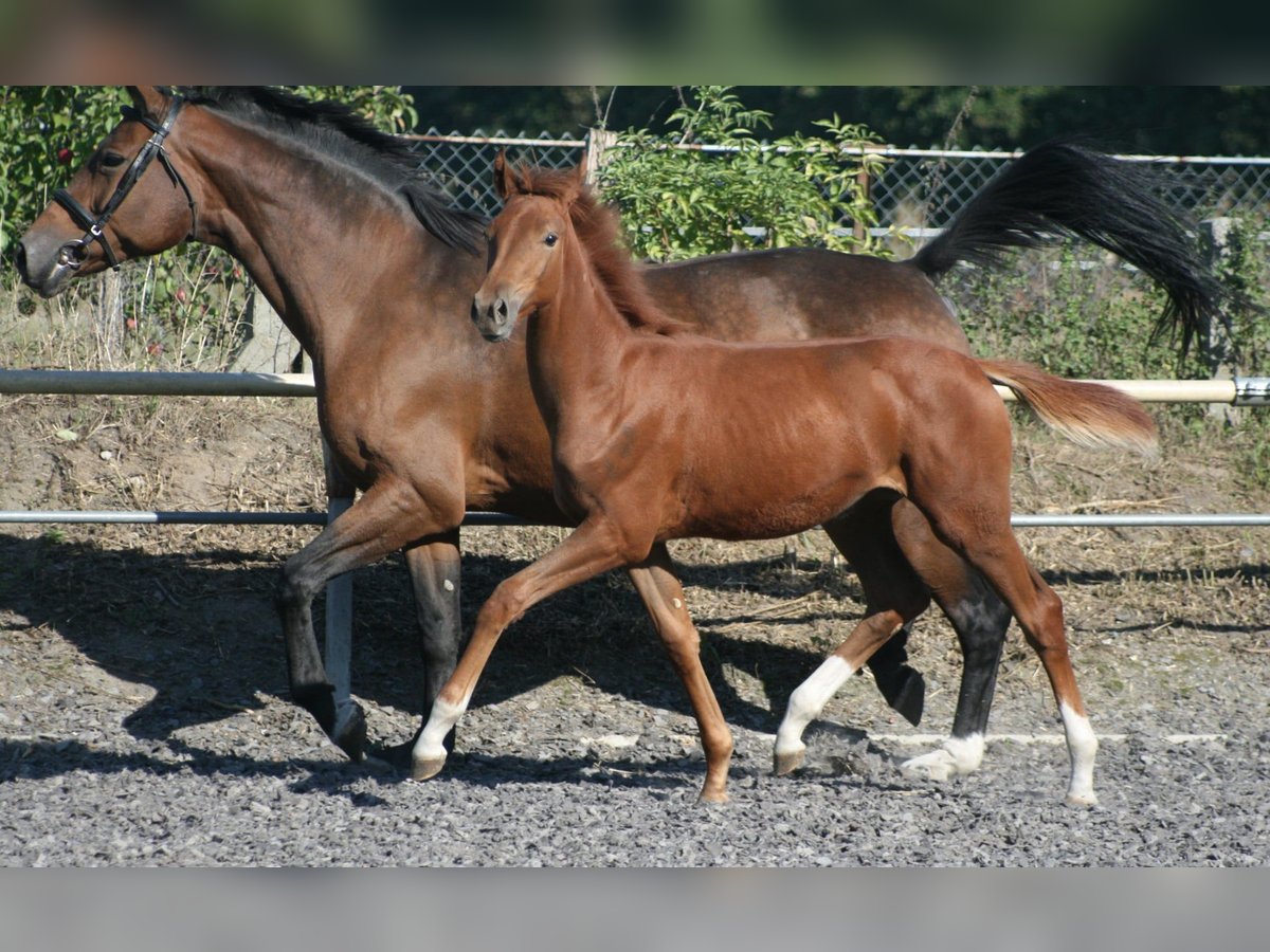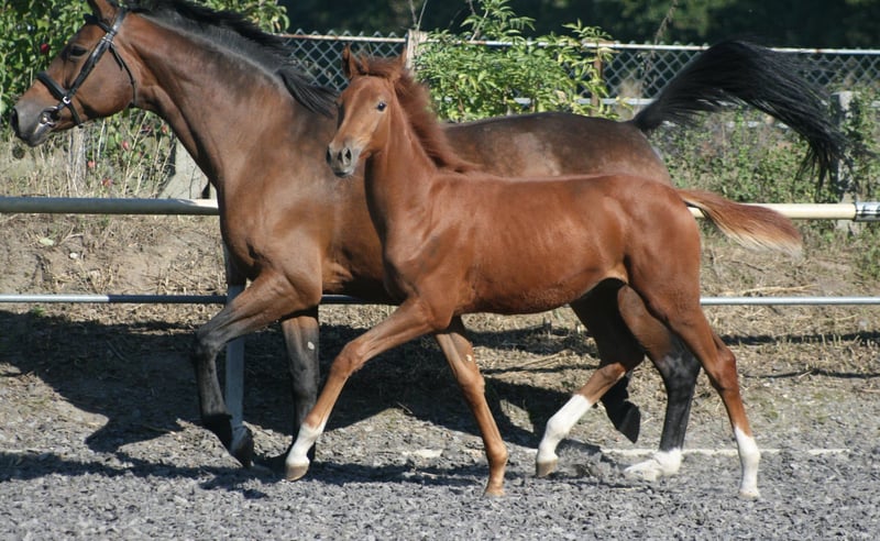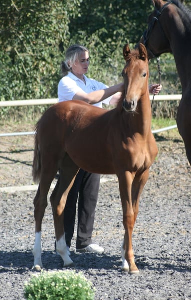 Élevée et sportive, la jument alezane Soramira TN, née le 26 mars 2025, est parfaitement adaptée au concours complet. Son père, le vainqueur du HLP en concours complet et étalon d'élite Le Chevalier (également vainqueur de Nurmi), ainsi que sa mère, la prämienstute Soraya TN, une fille de Domhardt – Graf Lindenau, renforcent son profil. Les raisons de sélection sont également d’ordre génétique : elle provient de la rare mais noble lignée de Walküre von Diakon, qui a déjà produit d’exceptionnels chevaux pour l’élevage du Trakehner, tels que Sachsenkönigin ou Samland, lauréate du Championnat des juments du Nord. Sur le plan sportif, la génétique joue également en sa faveur, avec des ancêtres tels que Cavallieri xx, Ramzes x, Marduc, Abu Afas ox et à plusieurs reprises le très estimé cheval de performance Modus xx. Soramira, fidèle à ses origines blood, se montre d’une noblesse exceptionnelle, avec un port de tête élégant, de longues jambes et de très bonnes allures, notamment un galop remarquable. La jument alezane a d’ailleurs reçu une prime de présentation pour sa naissance de la part de la direction de l’élevage.