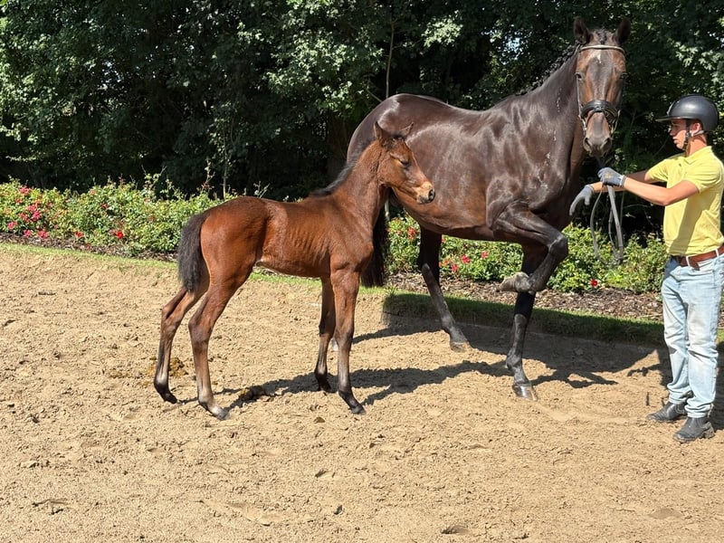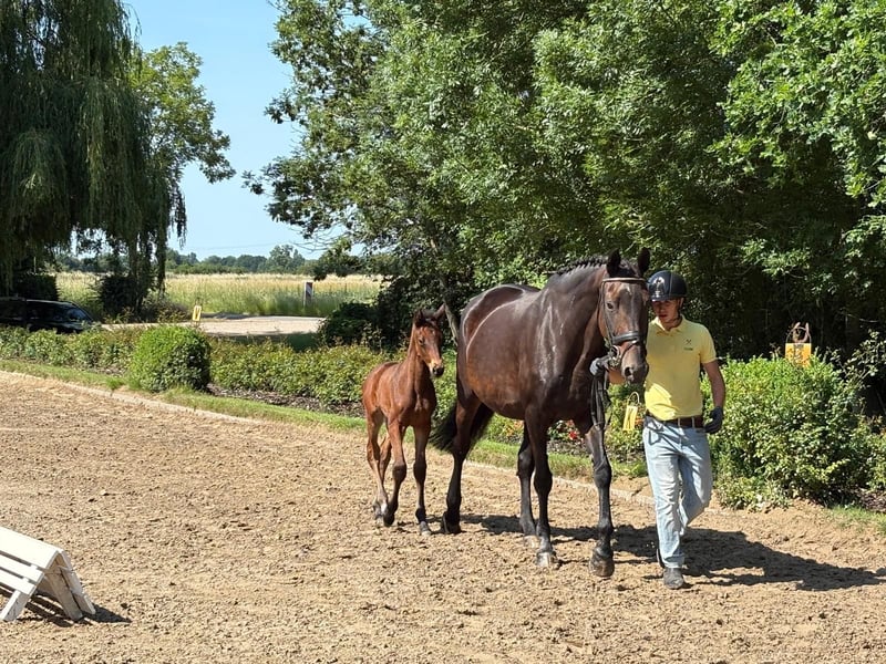 Trakehner charm. She is a safe bet, our filly from Schwarzgold-King Arthur. A lot of substance and Trakehner type are her attributes. She moves freely in all her basic gaits and always uphill. She was born in mid-May and is already showing good development accordingly. Price €6000.