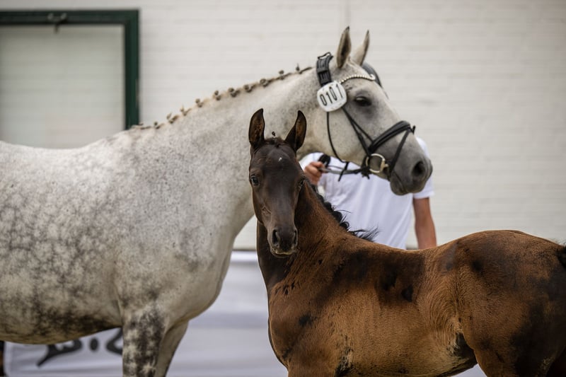 In tänzerischer Leichtigkeit und mit der Selbsterhaltung und dem Bergauf einer typbrillianten Diva kann sich dieses Stutfohlen beständig bei jedem Auftritt in Szene setzen. Der Vater Bahrain avancierte 2023 als bewegungsstarker und charismatischer Halbblüter im Rahmendes Trakehner Hengstmarktes zum Publikumsliebling. Die Mutter Blütenzauber ist eine Tochter des in internationalen VS-Prüfungen sowie ebenfalls in S-Springen erfolgreichen El Greco TSF. Es folgt im fallenden mütterlichen Stamm der erwiesene arabische Leistungsvererber Bazar, dieser ist wiederum ein Sohn des legendären Bajar, der resultierend aus einer bewussten Linienzucht, ein zweites Mal im mütterlichen Pedigree verankert ist. Der Ursprung dieses unter Outcross-Gesichtspunkten züchterisch attraktiven Pedigrees liegt in der bewährten Familie der Bergsicht (Carl - Gut Ludwingsburg). Der Vollbruder zur Ur-Großmutter war unter dem Namen „Balsac“ selbst im internationalen Vielseitigkeitssport erfolgreich. Ein weiterer Halbbruder zur Ur-Großmutter) konnte sich zudem erfolgreich im S-Parcours bewähren. Blutgeprägte Offerte in edlem Erscheinungsbild und besten disziplinübergreifenden Referenzen.