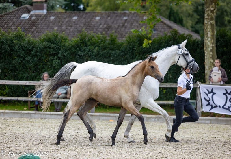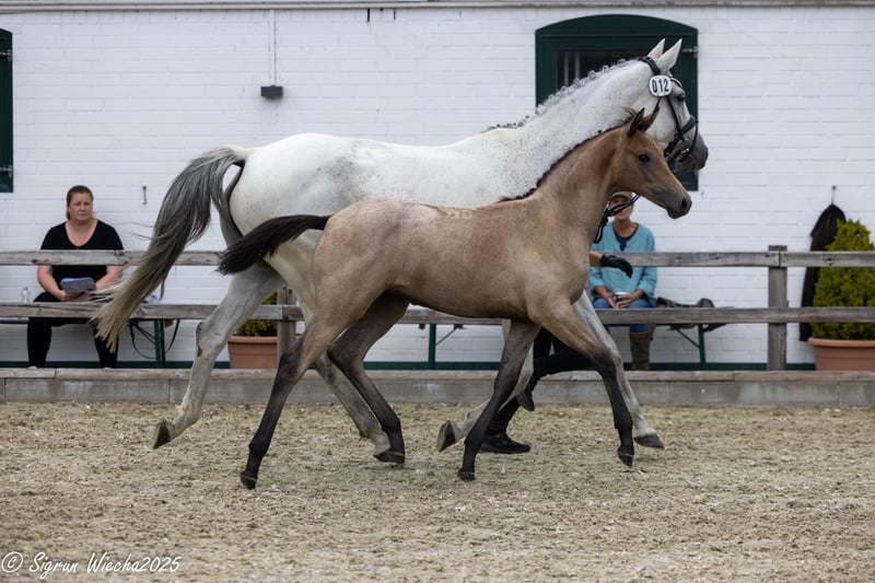 This filly, imbued with unmistakable charm and a unique nobility, combines the proven bloodlines of her sire Bahrain of Ludwigsburg, which includes the renowned Bazar, with one of the most distinguished Trakehner mare lines. Her granddam, Herbstkönigin, is a full sister to the approved sire Herbstkönig and also to the licensed and successful M-level show jumper Herbstklang (by Kasimir). This striking filly qualified for the Schleswig-Holstein Foal Championship and performed excellently in the bloodlines-focused class. A harmonious blend of Arabian genetics, typicity, and an appealing movement pattern characterized by secure, steady, and uphill gaits.